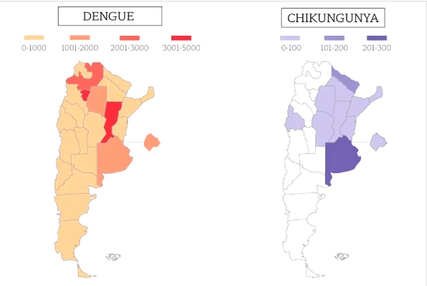 Salta, Tucumán, Santa Fe, la ciudad de Buenos Aires y Santiago del Estero están entre las provincias con más casos declarados, aunque en todo el territorio hubo positivos, entre autóctonos o casos luego de un viaje. En más del 95%, son infecciones contraídas donde la persona vive, trabaja o estudia.